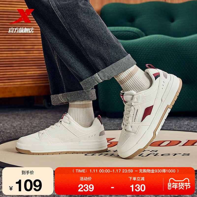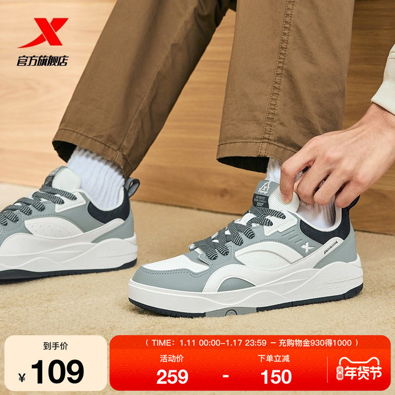 特步征程丨板鞋男鞋冬季新款低帮黑白休闲鞋轻便百搭男士运动鞋子