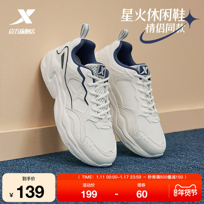 特步星火休闲鞋男鞋冬季革面轻便百搭厚底增高女鞋革网正品运动鞋