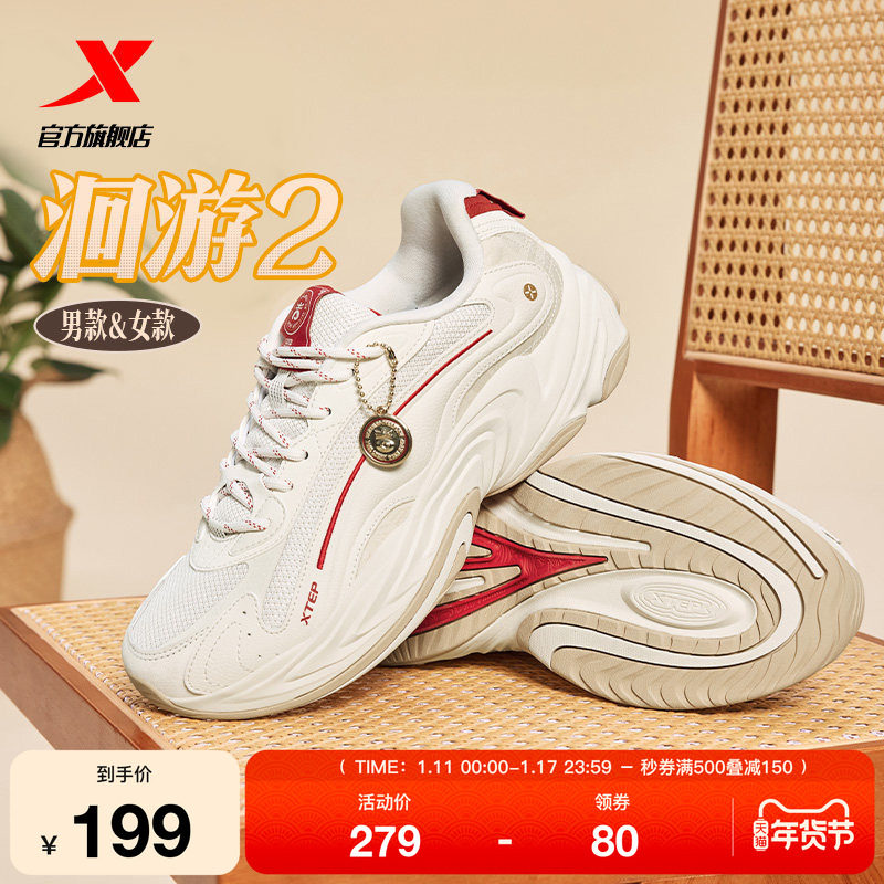 特步新春系列丨洄游2休闲鞋男冬季百搭复古老爹鞋轻便运动鞋女鞋
