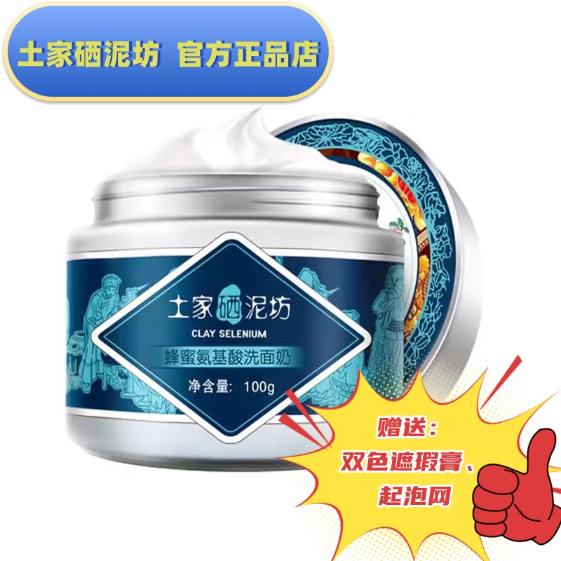 土家硒泥坊小蓝罐洁面膏低泡沫脆弱肌膏状氨基酸洗面奶女温和清洁
