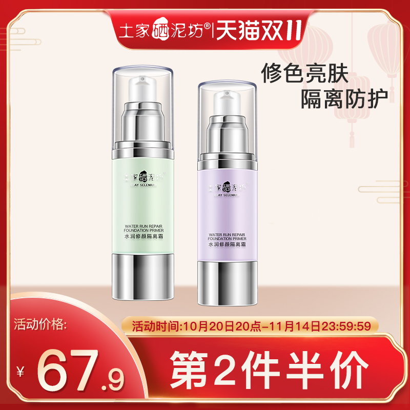送遮瑕膏 |土家硒泥坊透润丝滑妆前乳保湿滋润旗舰店打底隔离霜女