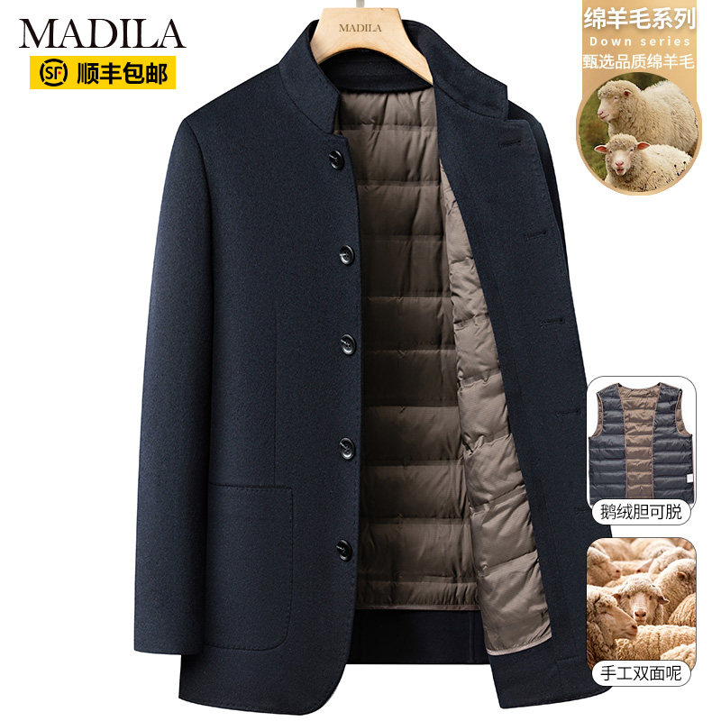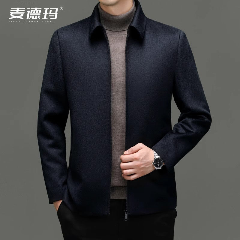 鄂尔多斯市2025春秋新款中年男士翻领夹克大衣羊毛男外套毛呢中年