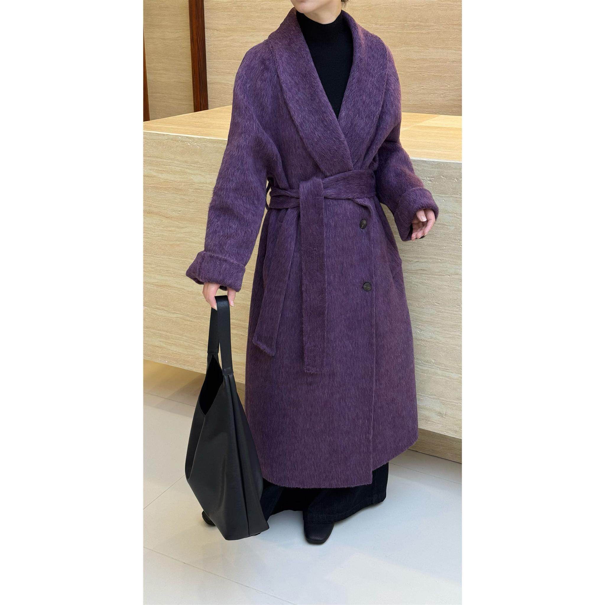 2025紫色秋冬高级新款韩系宽松中长款气质双面羊毛大衣外套毛呢外