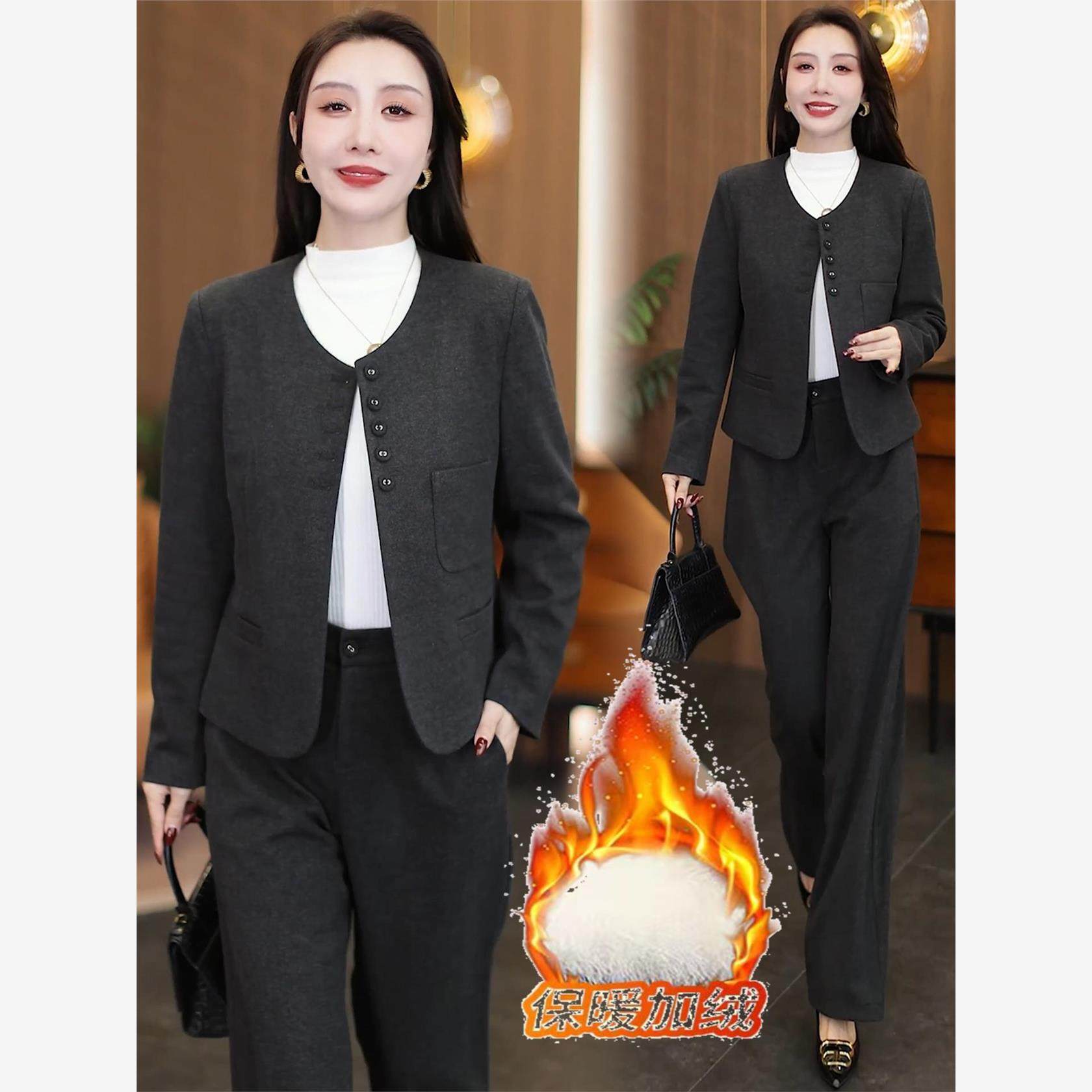 时尚气质小香风套加棉套装女2025冬季新款显瘦减龄百搭外套毛呢裤
