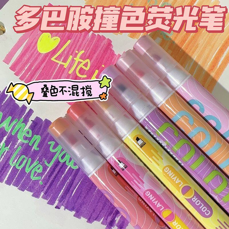 双头叠色荧光笔ins高颜值韩版学生手账一整套标记笔课堂记号彩笔