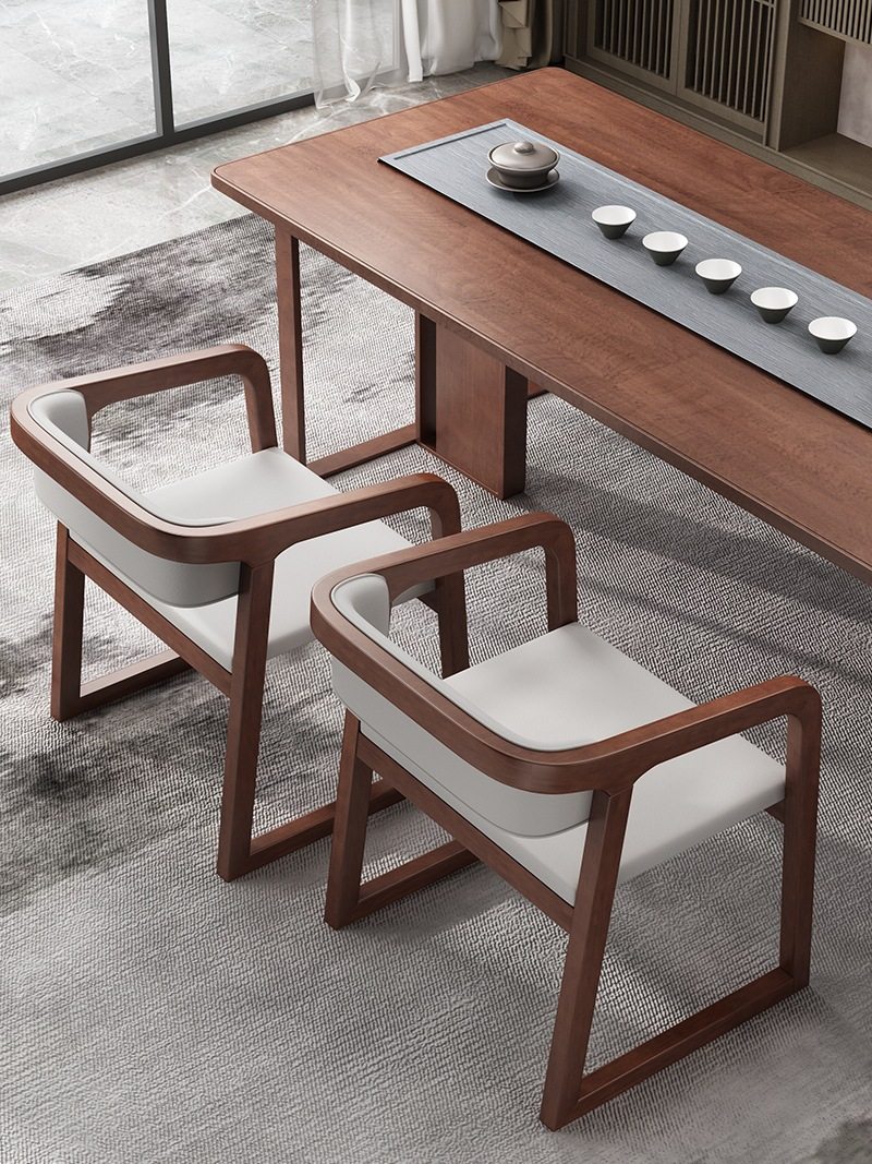 新中式实木椅子会议软包休闲书房酒店餐厅洽谈泡茶桌椅带扶手餐椅