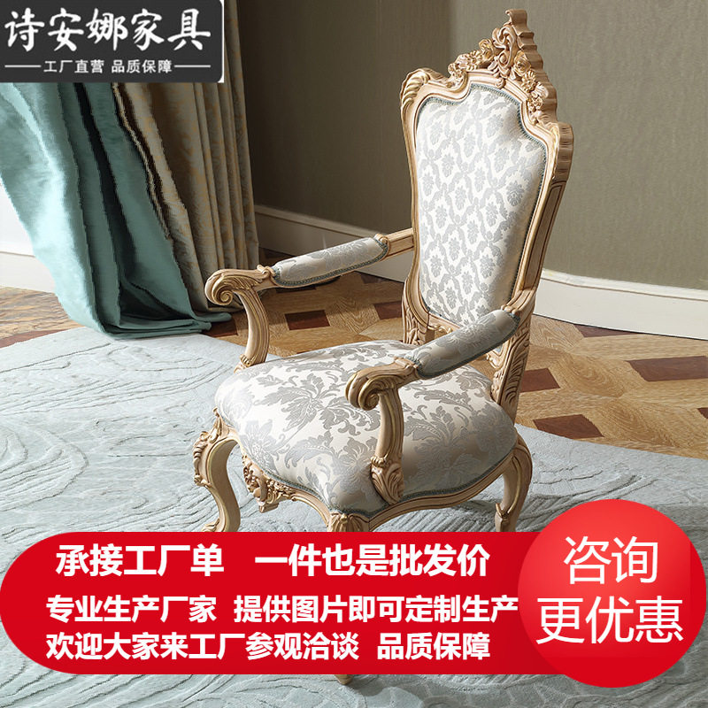 美式胡桃色餐椅家用实木带扶手椅新中式艺术欧式中古书房书桌椅子