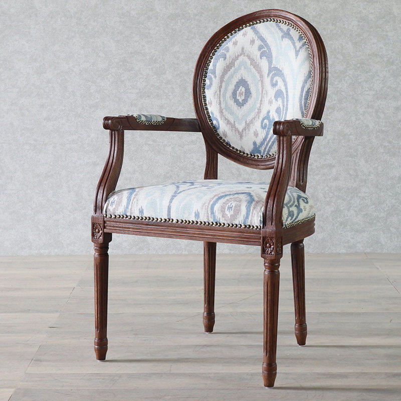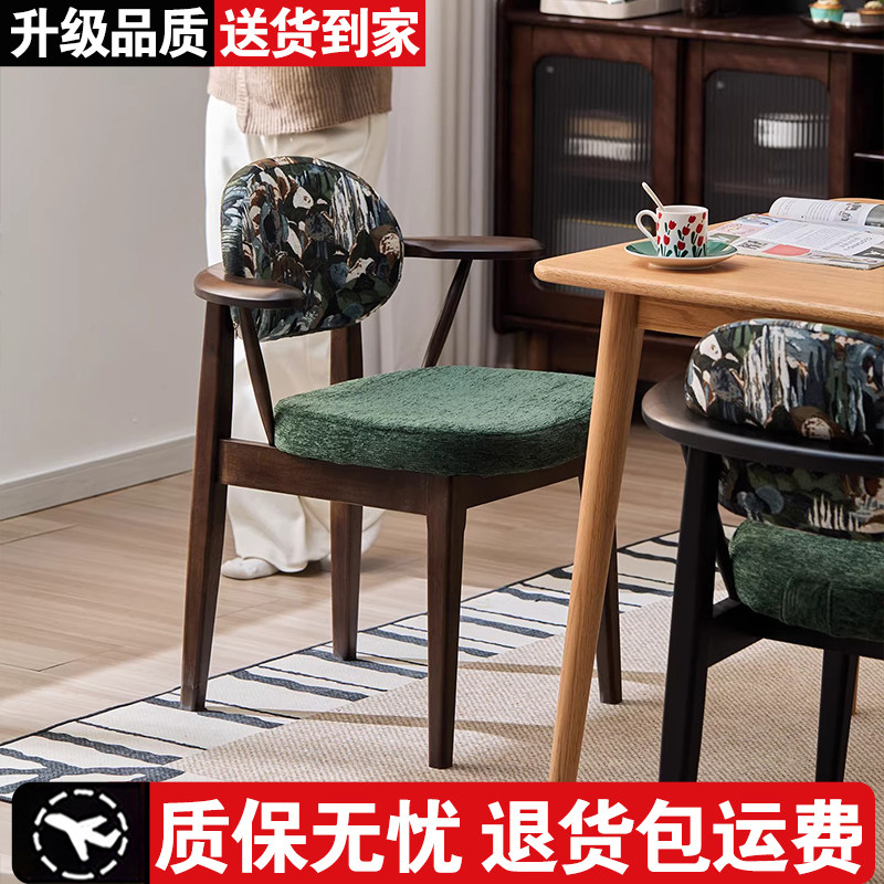 餐椅实木家用带扶手椅布艺软包靠背椅中古风咖啡厅餐厅高档休闲椅