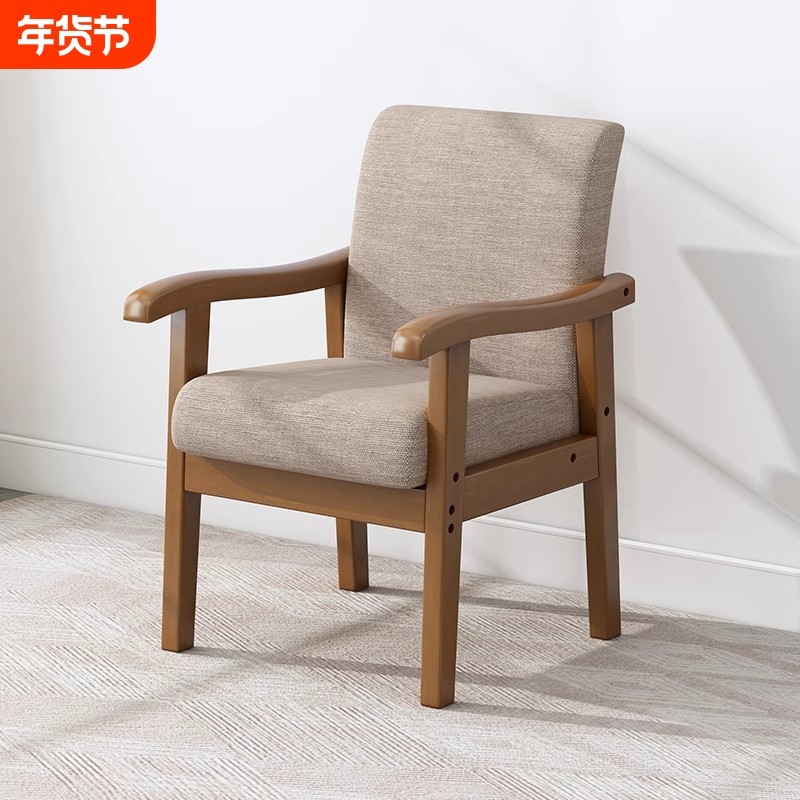 实木沙发椅带扶手书桌椅电脑椅家用阳台靠背椅麻将椅子休闲老人椅