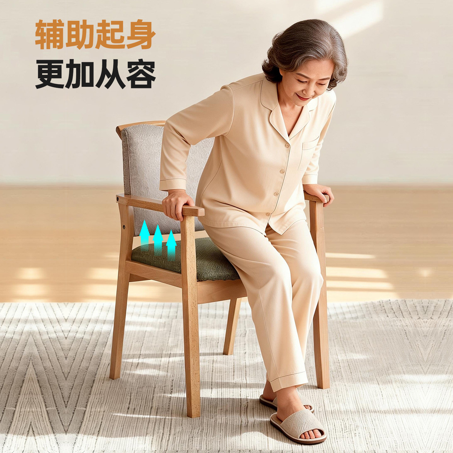 老年人久坐舒服不累椅子专用护腰座椅靠背带扶手防摔家用实木餐椅