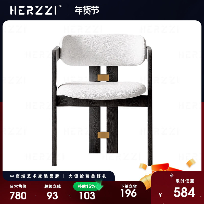 HERZZI中古风进口白蜡木实木餐椅餐厅带扶手设计师椅子高级茶椅