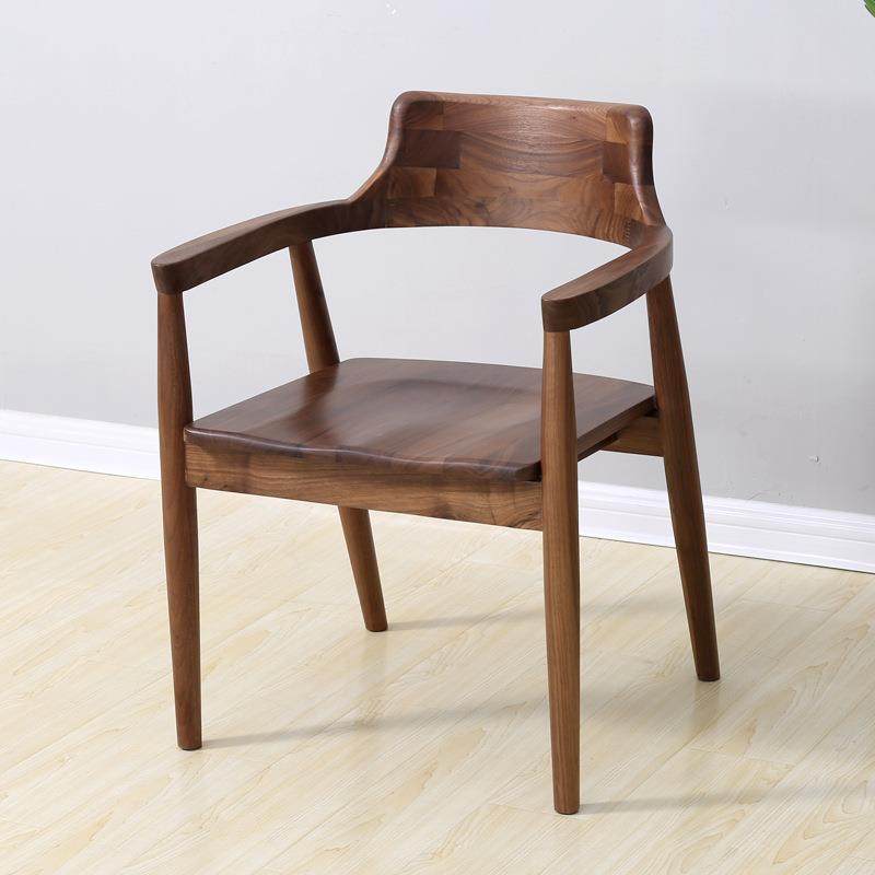 北美黑胡桃木餐椅带扶手飞燕椅复古简约高靠背休闲椅实木家用书椅