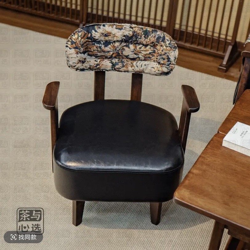 实木黑色侘寂风椅子家用茶桌靠背会议桌椅带扶手黑色实木喝茶靠椅