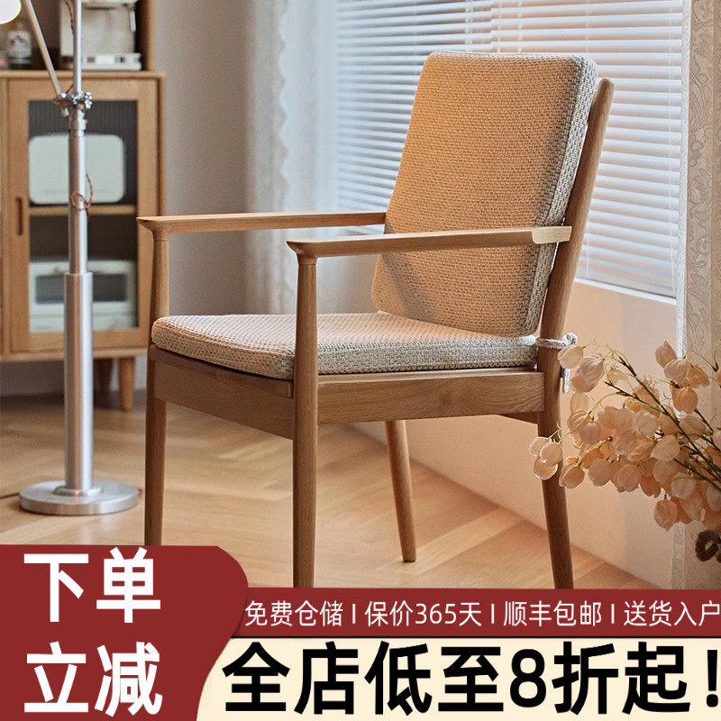 北欧实木橡木带扶手椅子日式布艺靠背软包餐椅简约书桌咖啡休闲椅