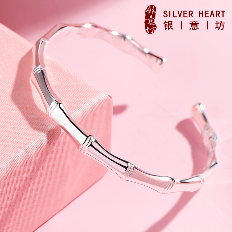 银意坊竹节银手镯女开口9999纯银镯子年轻款银饰生日礼物女可刻字