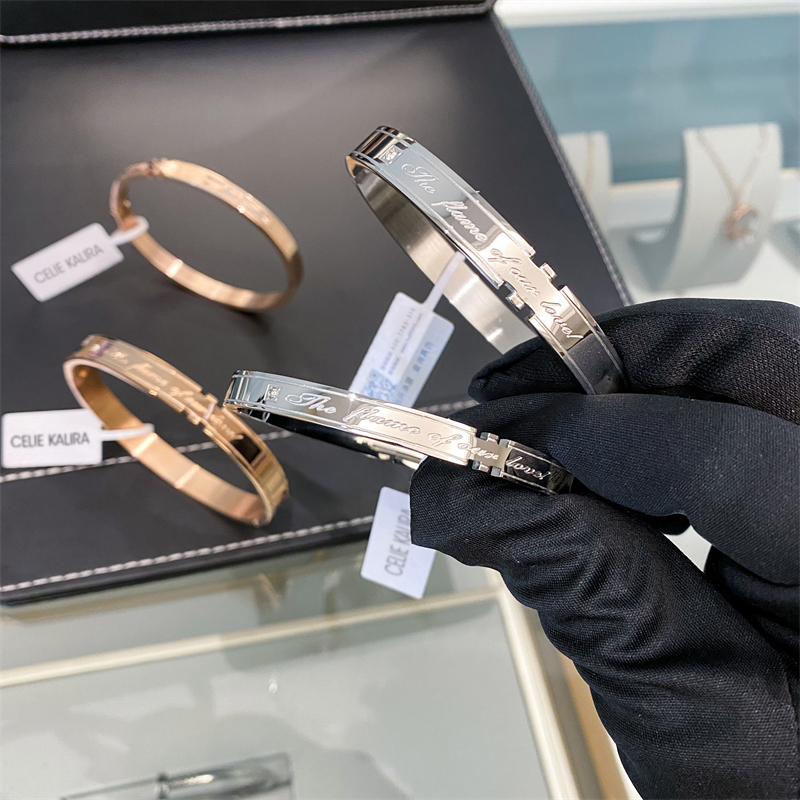CELIE KALIRA简约英文刻字镶钻情侣手镯小众男女生手环节日礼物