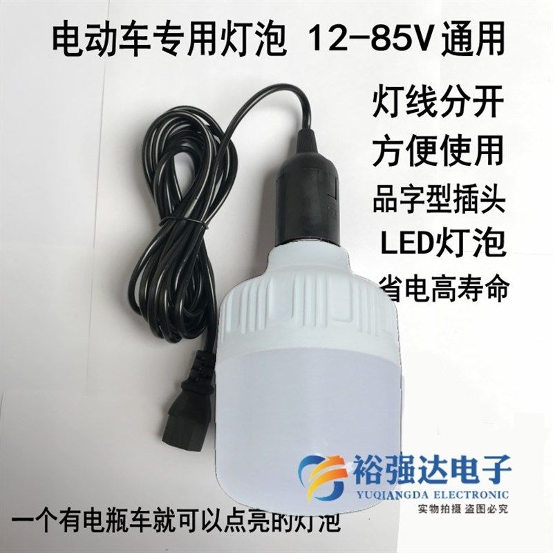 电动车灯泡12V-85V灯线分开 螺口带线品字型插头摆地摊灯夜市灯泡