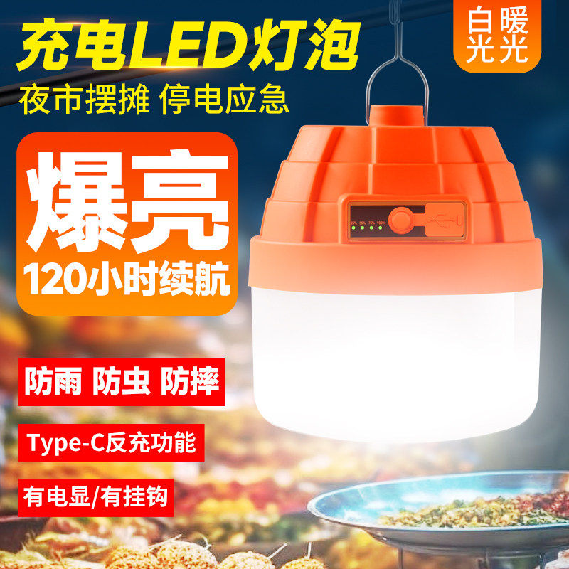 USB充电灯泡应急照明灯家用停电夜市摆摊地摊灯户外超亮LED露营灯