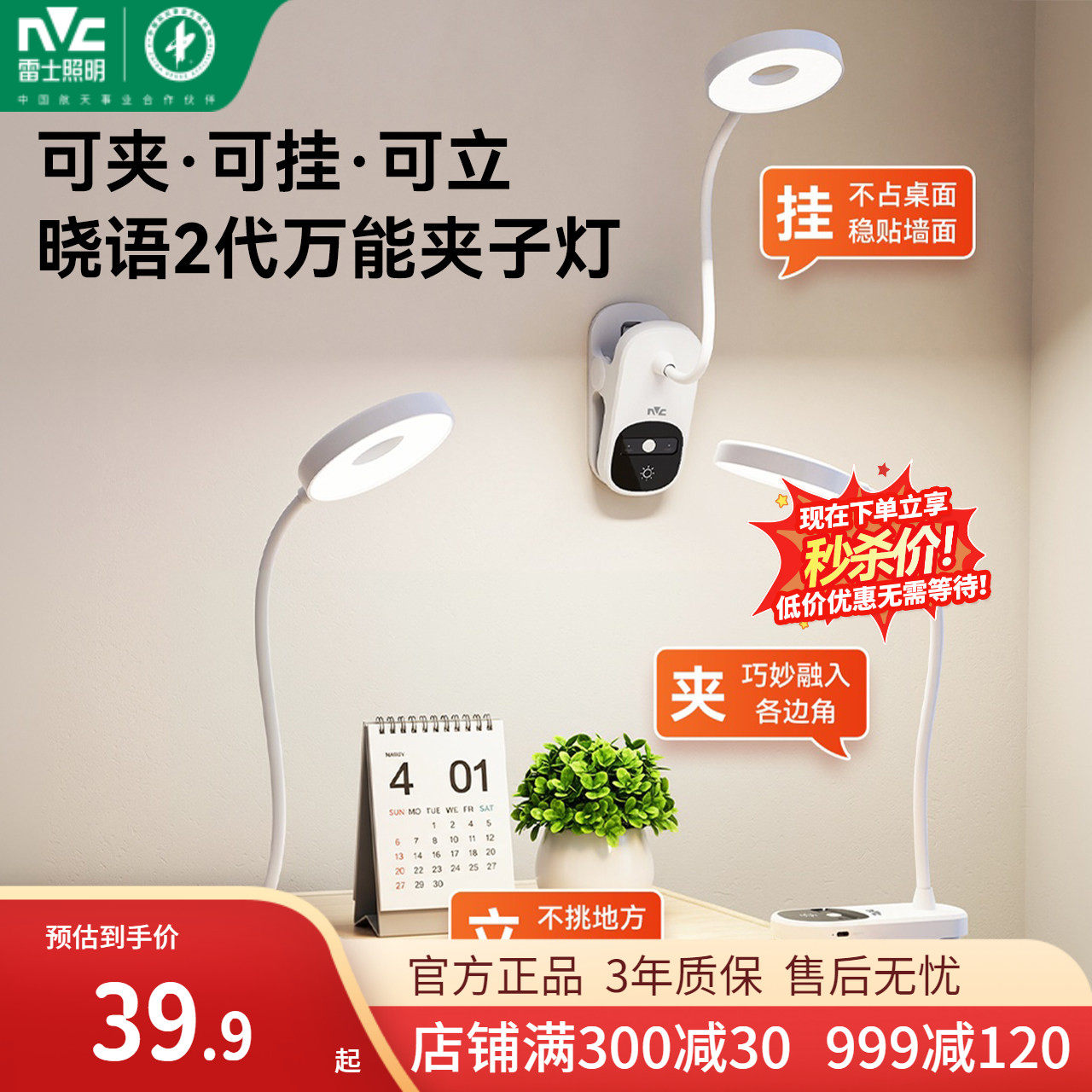 雷士LED充电台灯宿舍学生学习USB台灯床头地摊灯夜市灯调光夹子灯