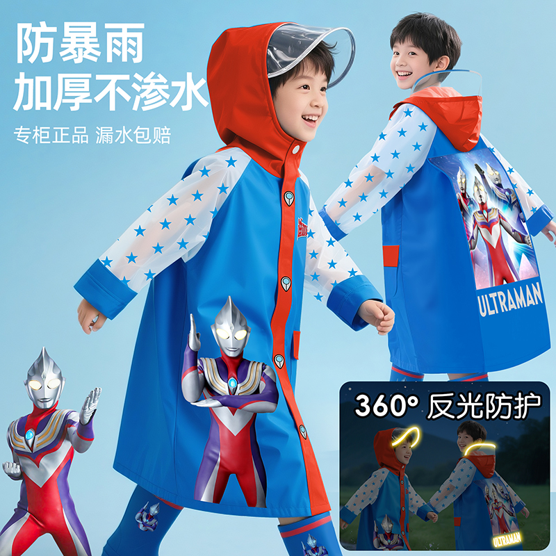 日系儿童雨衣男童女童小孩学生幼儿园宝宝防水书包位上学轻薄速干