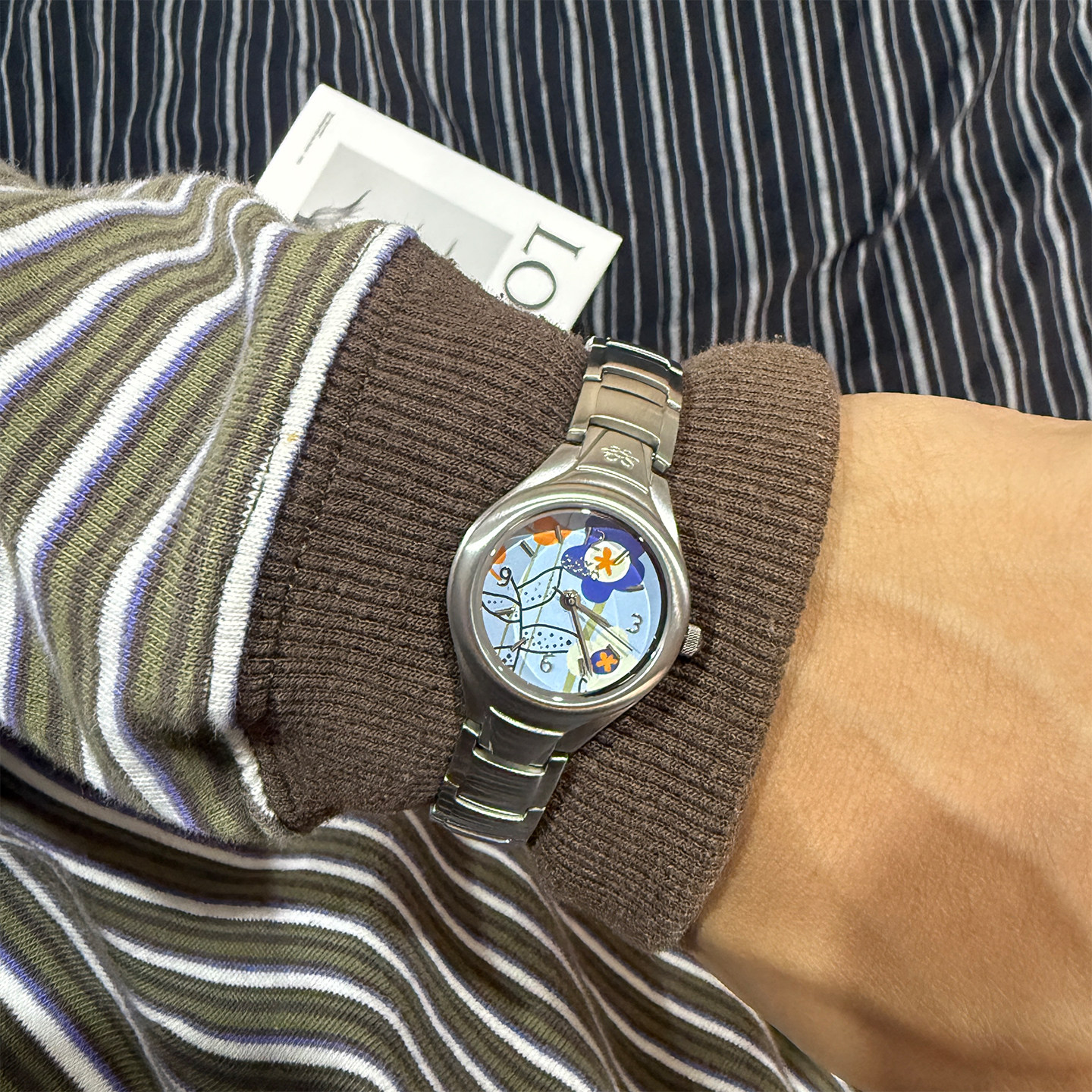 Awasteoftime浪费时间 原创插画石英手表花卉vintage圆形复古手表