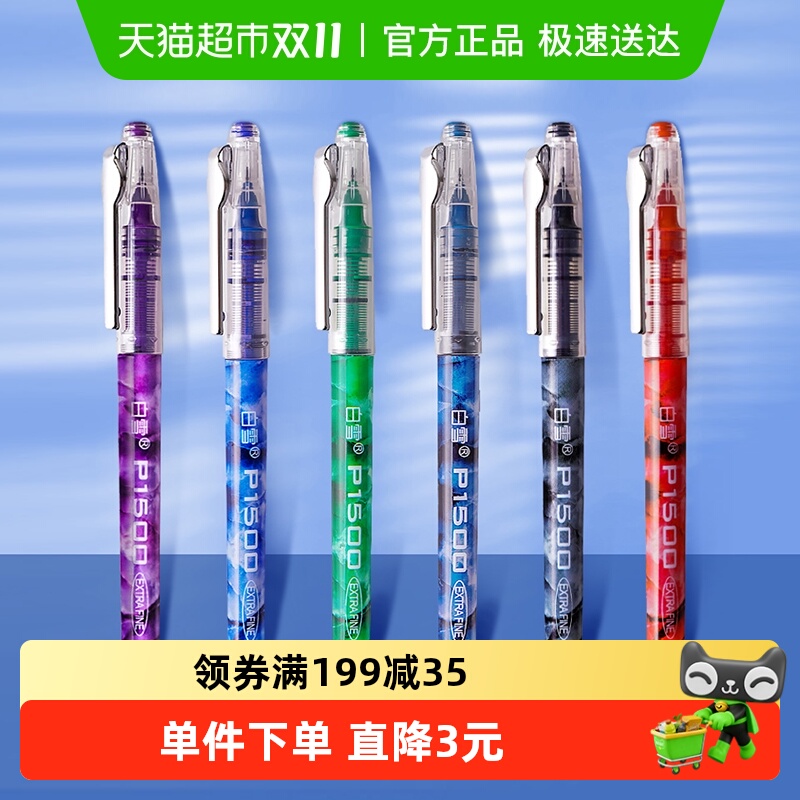 包邮白雪p1500直液式走珠笔蓝色中性笔ins日系学生专用彩色水性笔