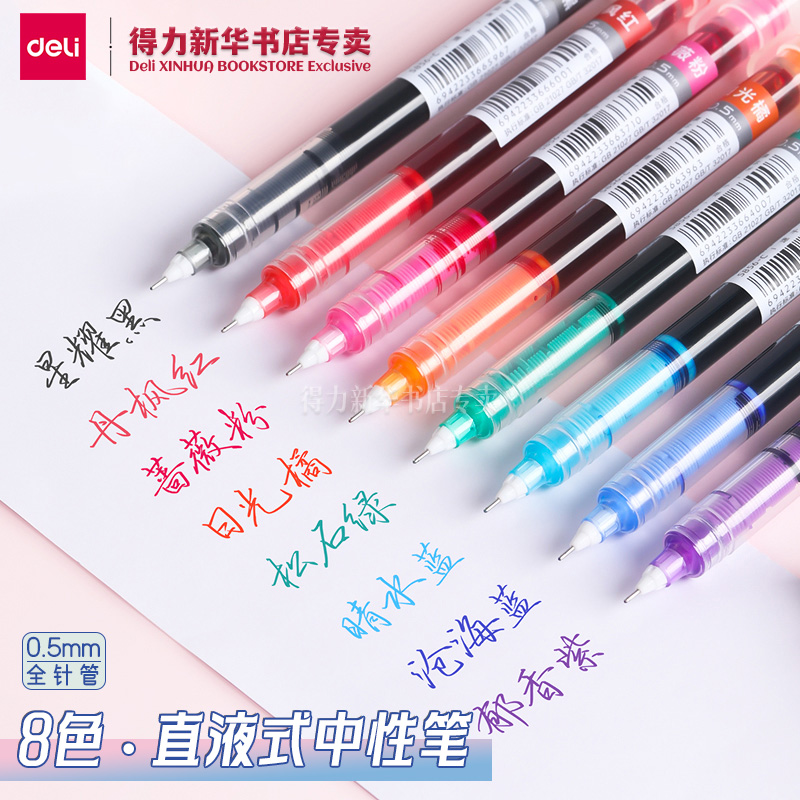 【6支包邮|偏远地区外】得力8色可选直液式中性笔0.5mm全针管彩色笔学生标记重点书写笔记用走珠笔S856文具