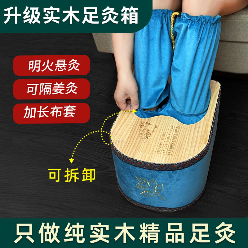 足部艾灸盒实木熏脚器无烟熏脚仪专用器具家用足底多功能暖足灸箱