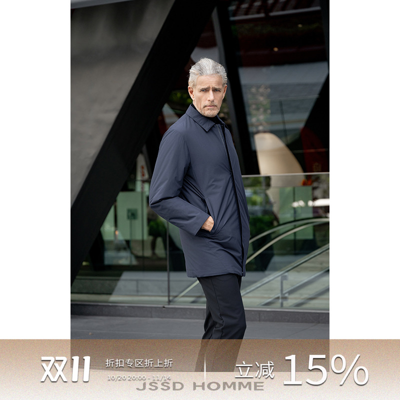 JSSD HOMME 秋冬棉服外套男款新款翻领中长款金标P棉服男款棉衣男