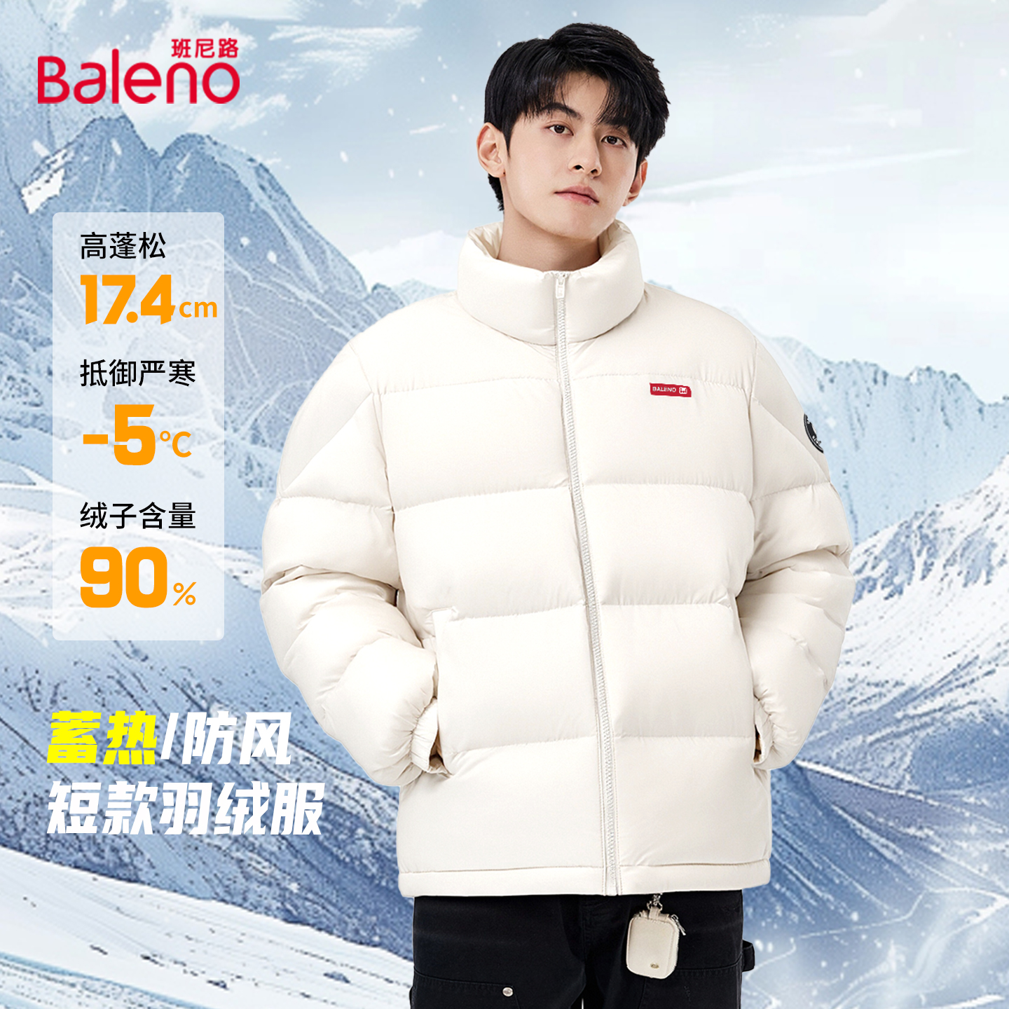 班尼路立领短款男士面包服冬季保暖加厚男款棉衣轻暖休闲羽绒服LF