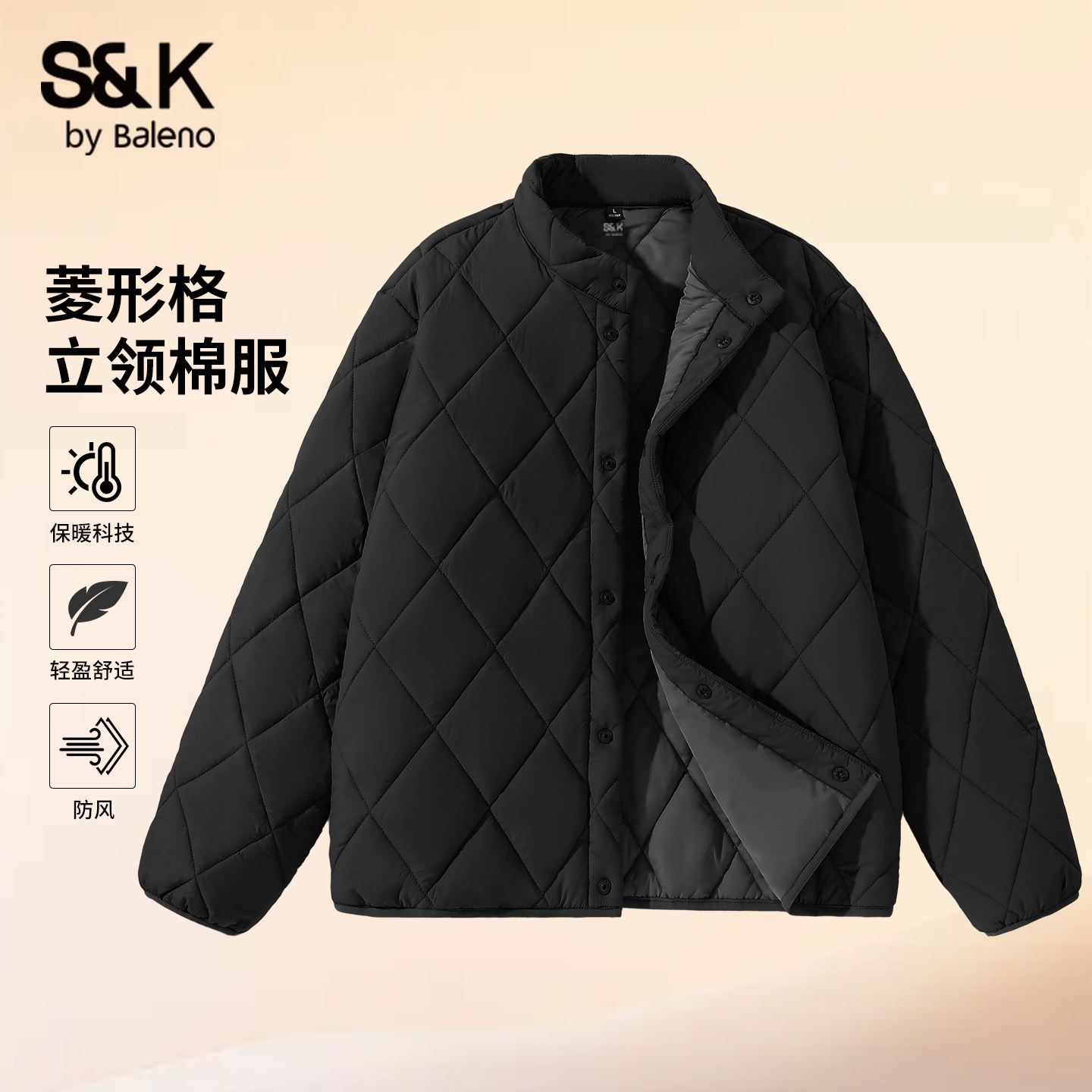 班尼路S&K系列菱格棉服男冬季新款男士立领保暖外套男款棉衣潮LF