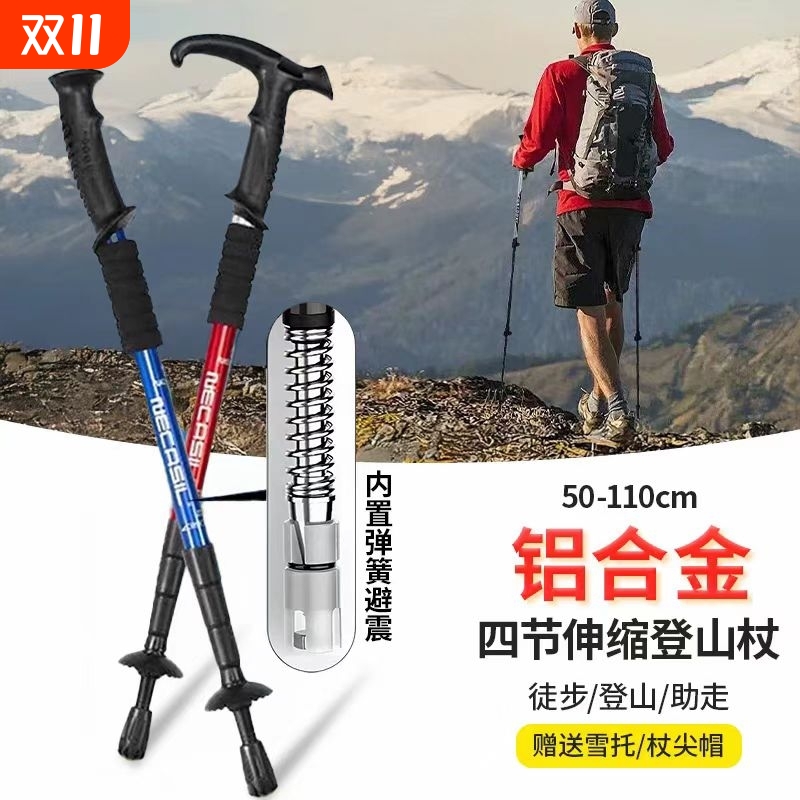夜途铝合金登山杖超轻手杖多功能手杖可伸缩登山杖爬山户外防身棍