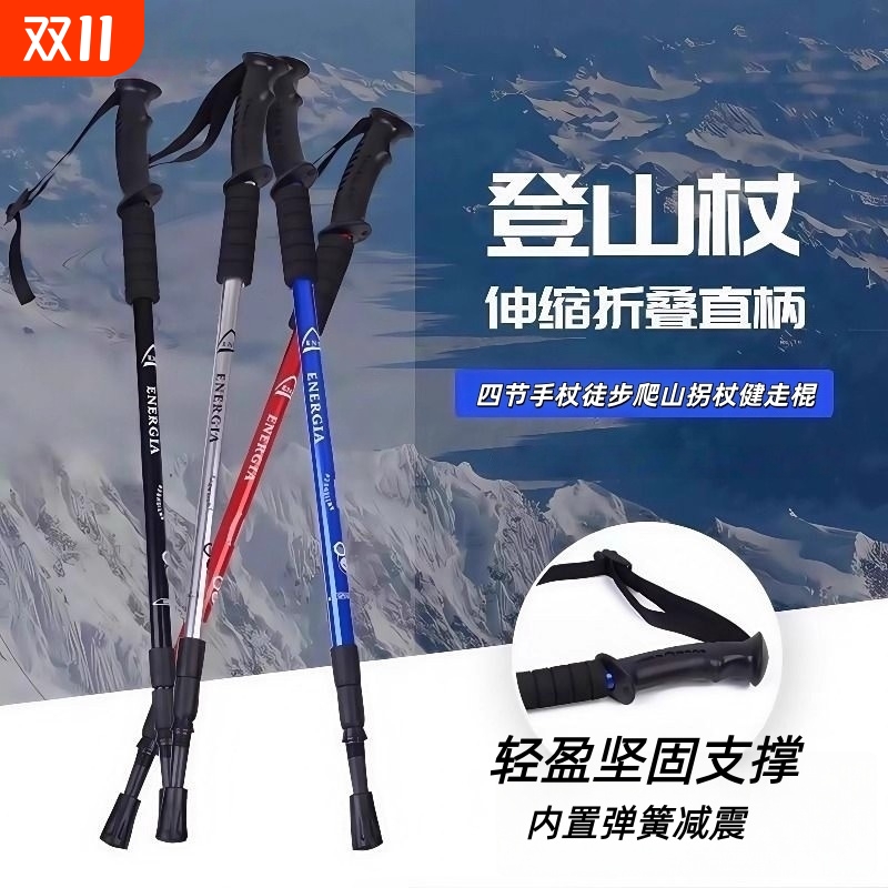 爬山拐杖专业户外登山杖手杖伸缩折叠多功能德国男女款轻便防身棍