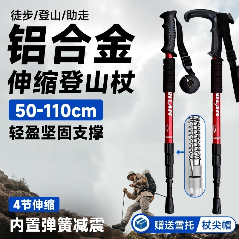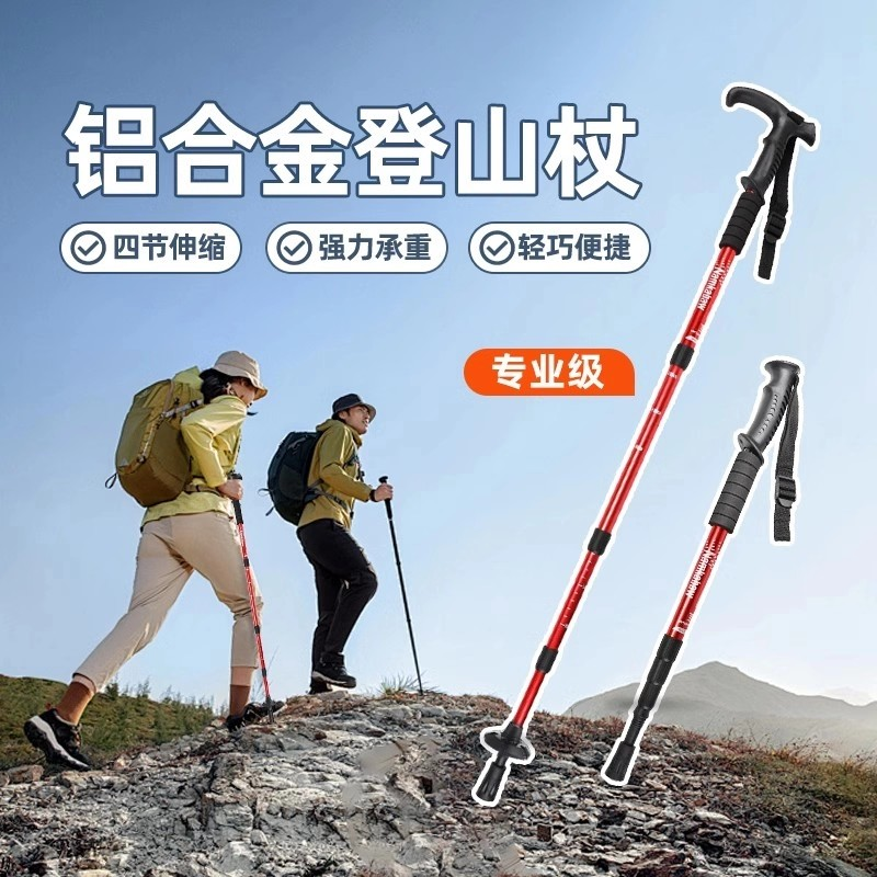 爬山拐杖专业户外登山杖手杖轻便折叠伸缩多功能德国男女款防身棍