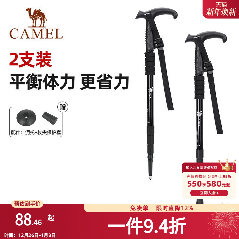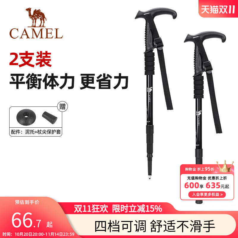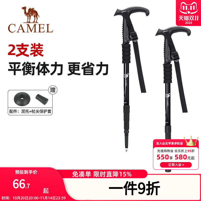 【2支装】骆驼登山杖碳素轻量伸缩拐杖折叠防身棍碳纤维行山手杖