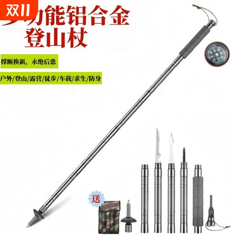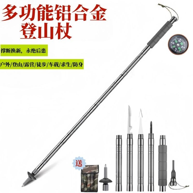 升级多功能铝合金登山杖户外徒步爬山拐杖轻便手杖野外生存防身棍