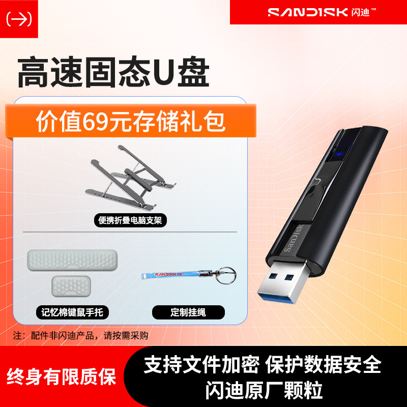 闪迪固态u盘128g优盘cz880高速usb3.2接口固态3.0加密打碟u盘