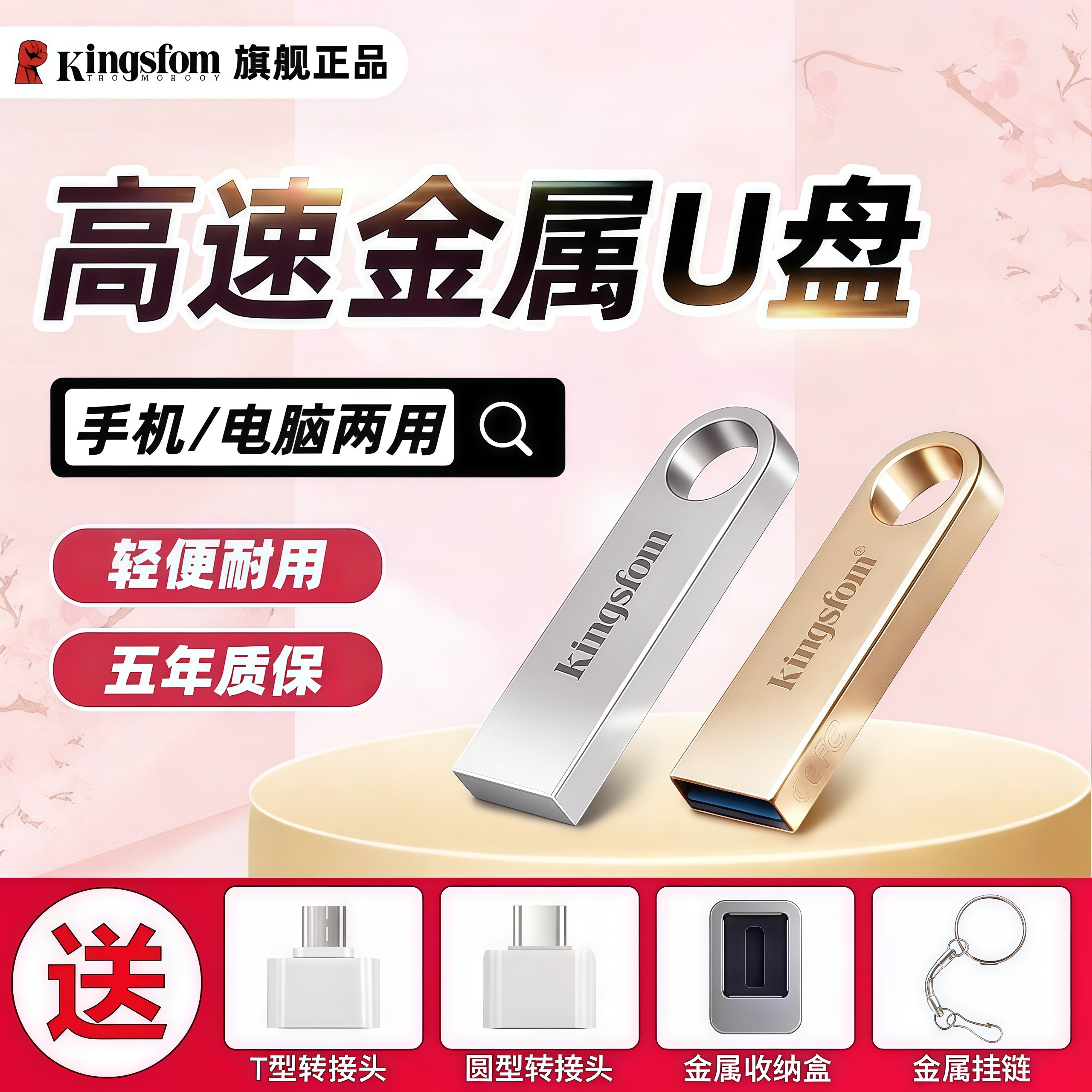 Kingsfom正品高速3.0大容量U盘128G优盘64G手机电脑两用32g定制