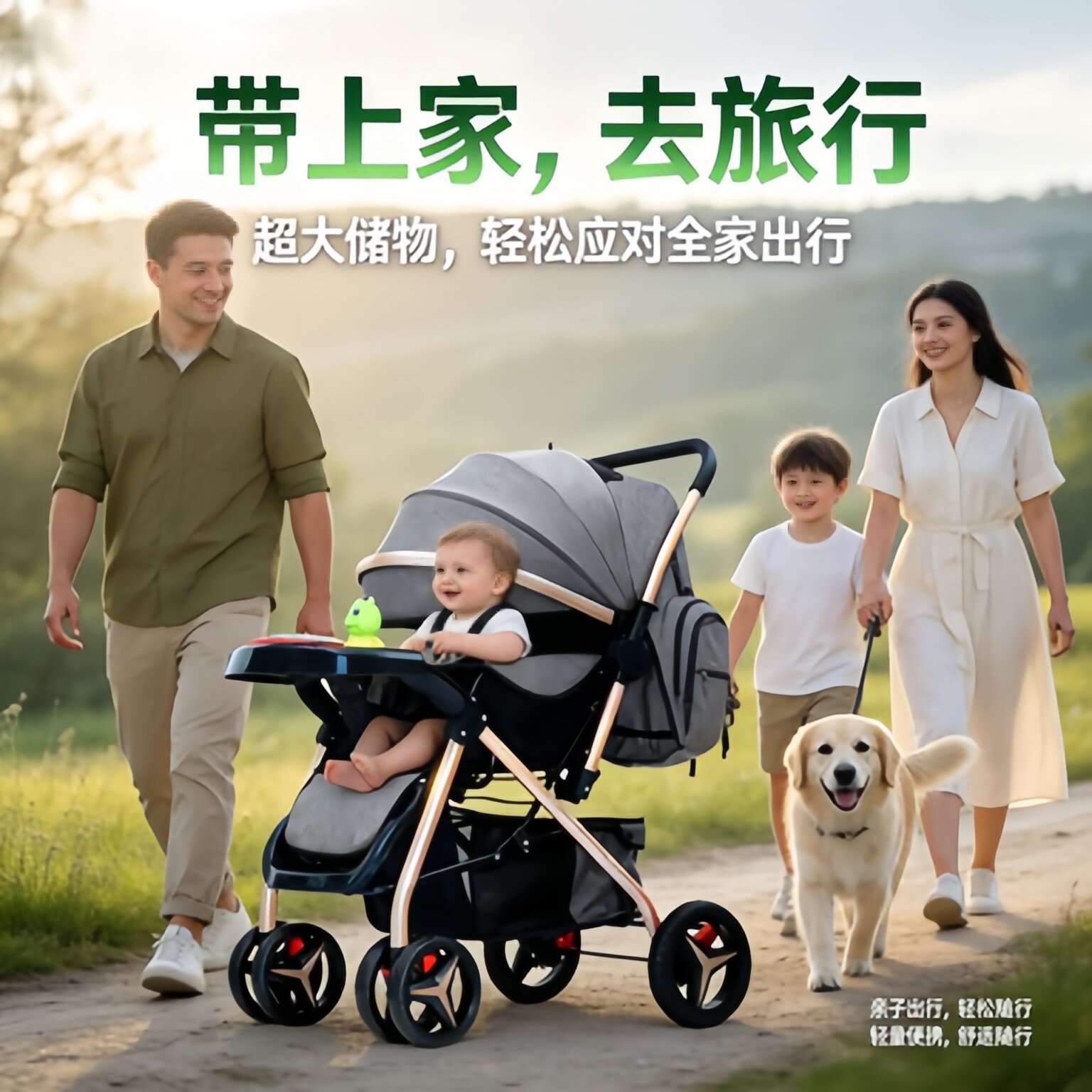 婴儿推车餐车一体爆款婴儿手推车可折叠可坐可躺宝宝儿童溜娃双向