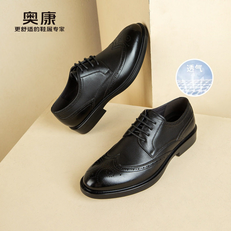 奥康男鞋春秋款英伦商务正装皮鞋时尚真皮舒适布洛克雕花结婚鞋男