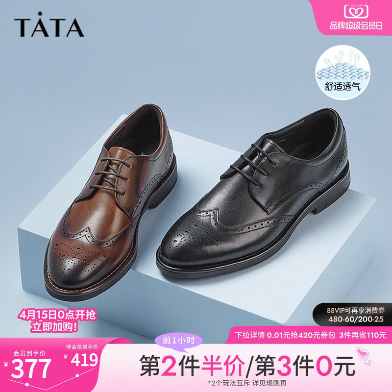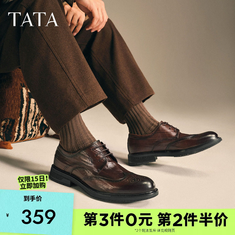 TATA他她男士布洛克皮鞋正装真皮商务休闲通勤西装男鞋结婚新郎鞋