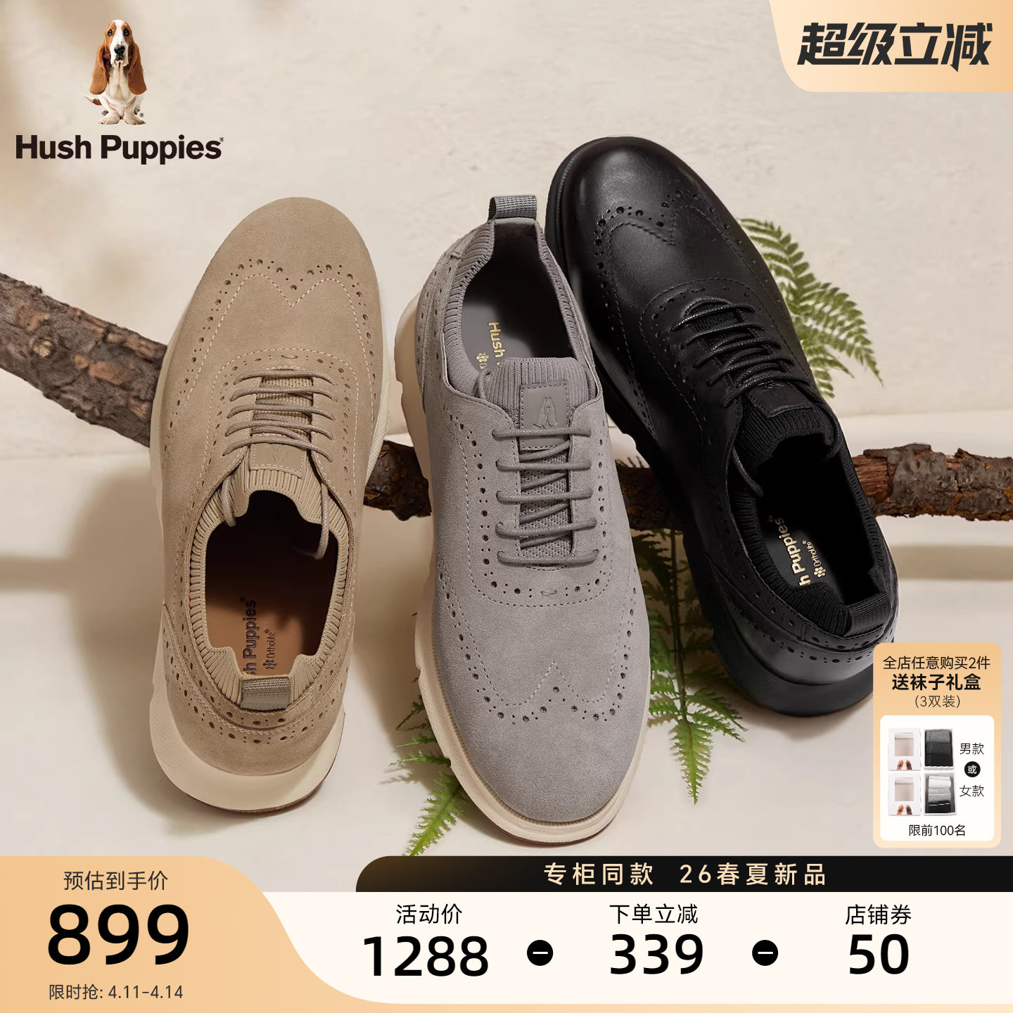 暇步士男士真皮德比鞋26春新款布洛克雕花透气商务休闲轻便皮鞋男