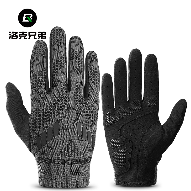 洛克兄弟骑行手套长指男公路山地自行车针织透气防滑手套春夏秋季
