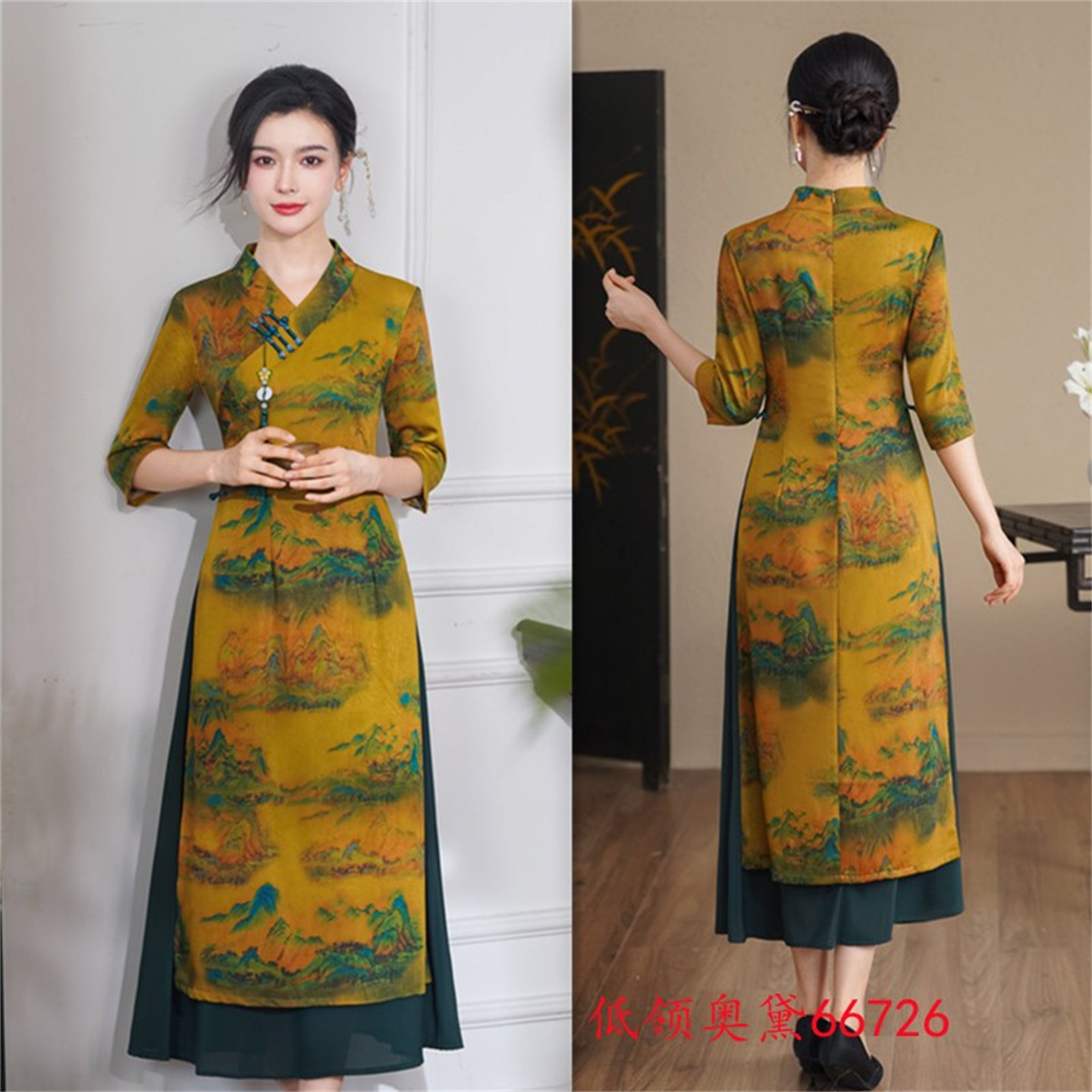 老上海复古改良民族风长款中袖奥黛旗袍裙2025秋季新款中老年旗袍