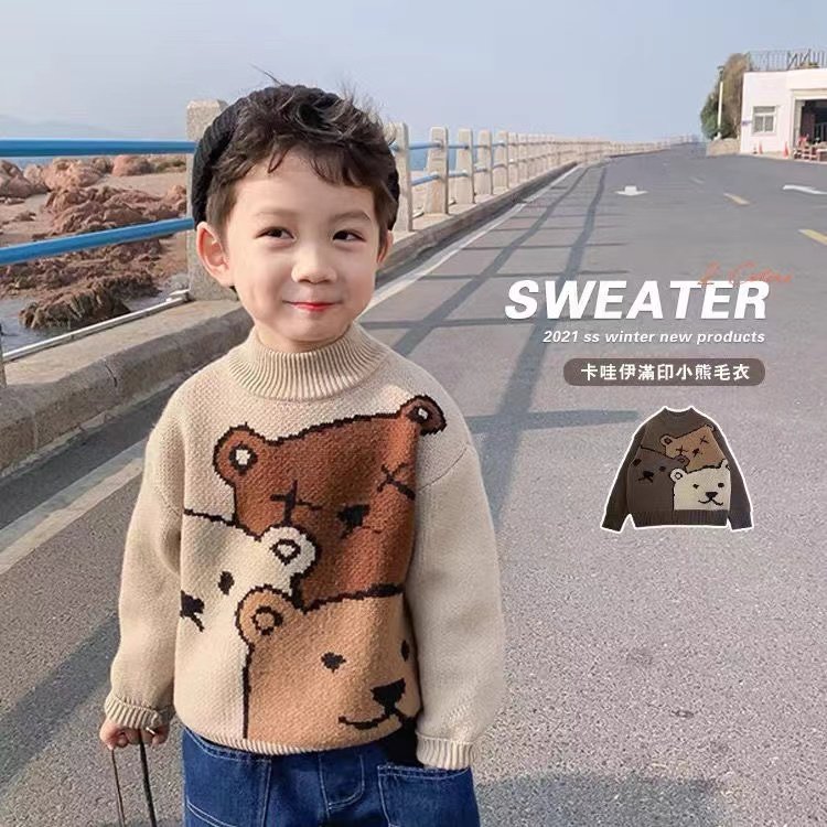 [抗静电起球]齐齐熊宝宝毛衣男童冬款加厚打底衫儿童半高领上衣女