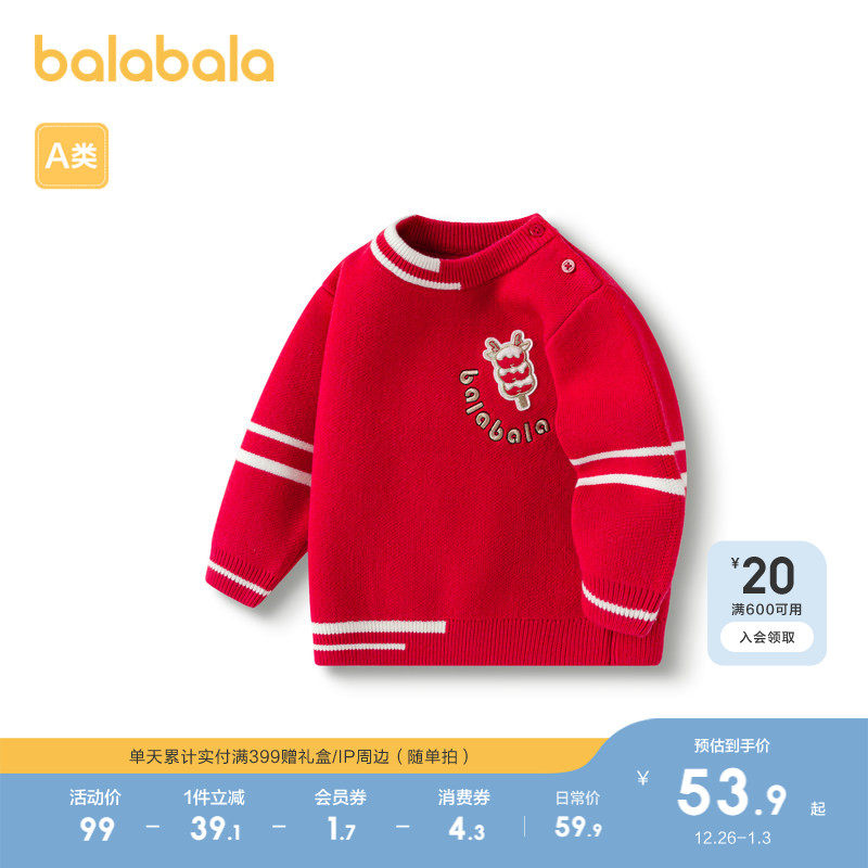 巴拉巴拉儿童针织衫宝宝毛衣男童女童打底衫秋冬款童装红色新年款