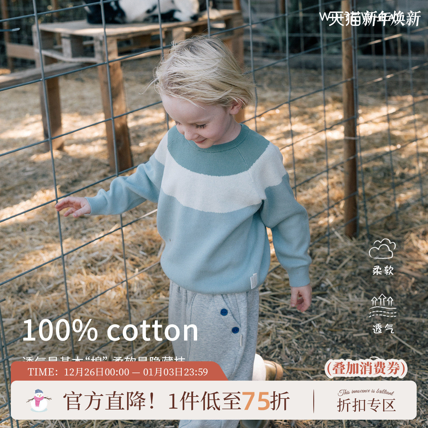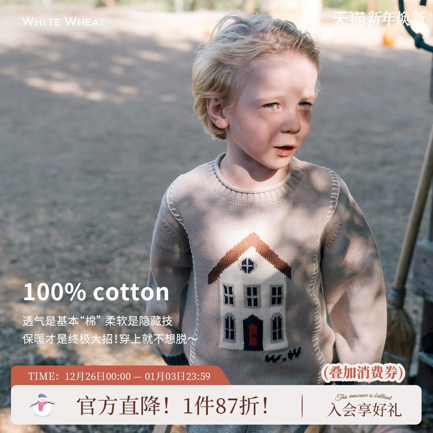whitewheat儿童2025冬季新款保暖宝宝毛衣男女童简约纯棉针织衫厚