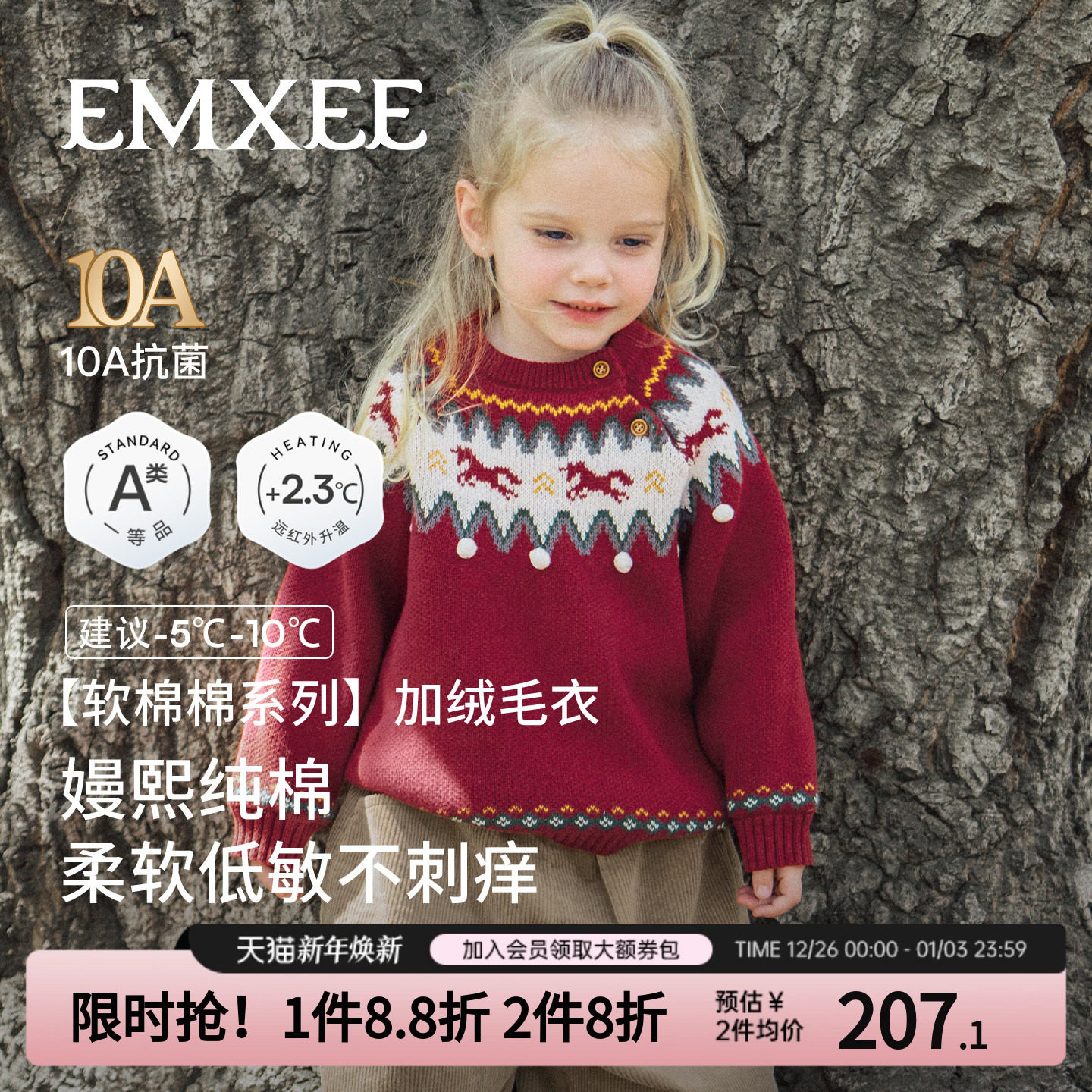 [艺术家联名]迷你巴拉巴拉宝宝毛衣男女童冬季红色新年内搭针织衫