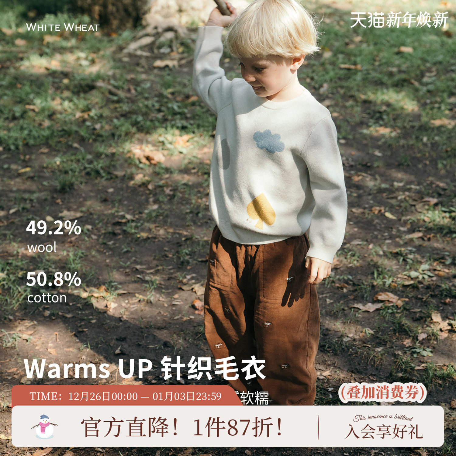 whitewheat儿童2025冬季新款保暖宝宝毛衣男女童时尚纯棉针织衫厚