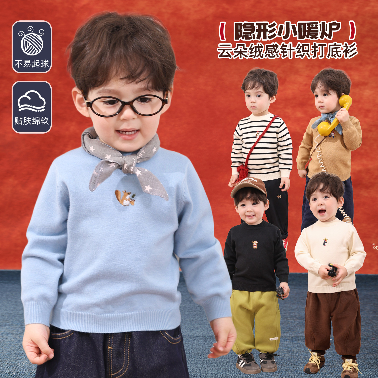 小O爸男婴童 宝宝毛衣男童冬季2025新款套头内搭婴儿针织纯色上衣